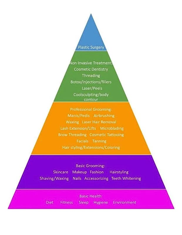 This is the beauty hierarchy of needs. I can’t find who created this, but it is modeled after Maslow’s hierarchy of needs.